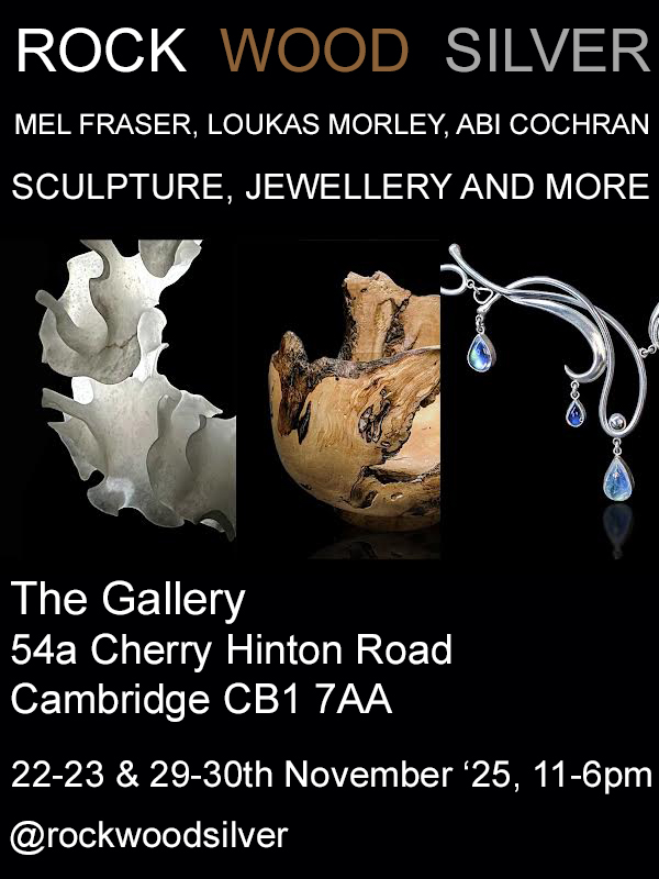 On the last two weekends in November (22-23 & 29-30th) Mel will be exhibiting with Abi Cochran silversmith and jewellery magician and Loukas Morley painter, furniture maker and all round top man at The Gallery in her home town of Cambridge.