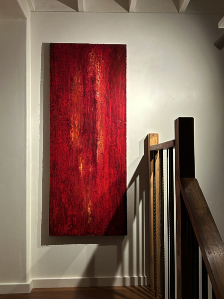 For this exhibition, Mel has created work in the theme of creation and the elements: Elemental:fire, earth and water with a few twists thrown in for good measure
