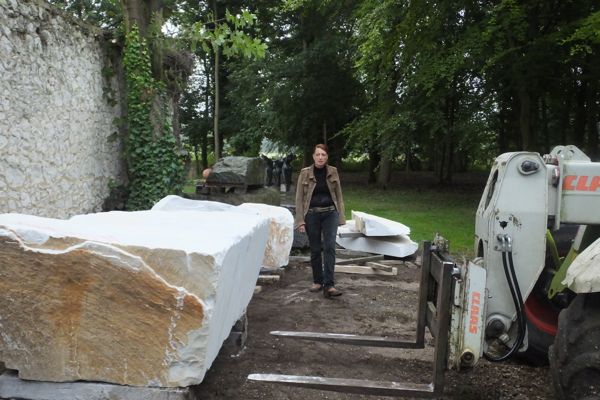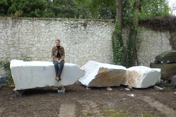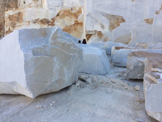 In August Mel and family holidayed in Italy which, obviously, included trips to Carrara and Pietrasanta. Mel was able to meet up with an old pal, Signore Franco Barattini, the man responsible for the Cave Michelangelo quarry high above Carrara. He, along with his glamorous assistant Antonella, graciously took Mel up to the quarry where she was able to chose and acquire several large pieces of beautiful cremo marble. 9.5 tonnes of Carrara’s finest to be precise.
