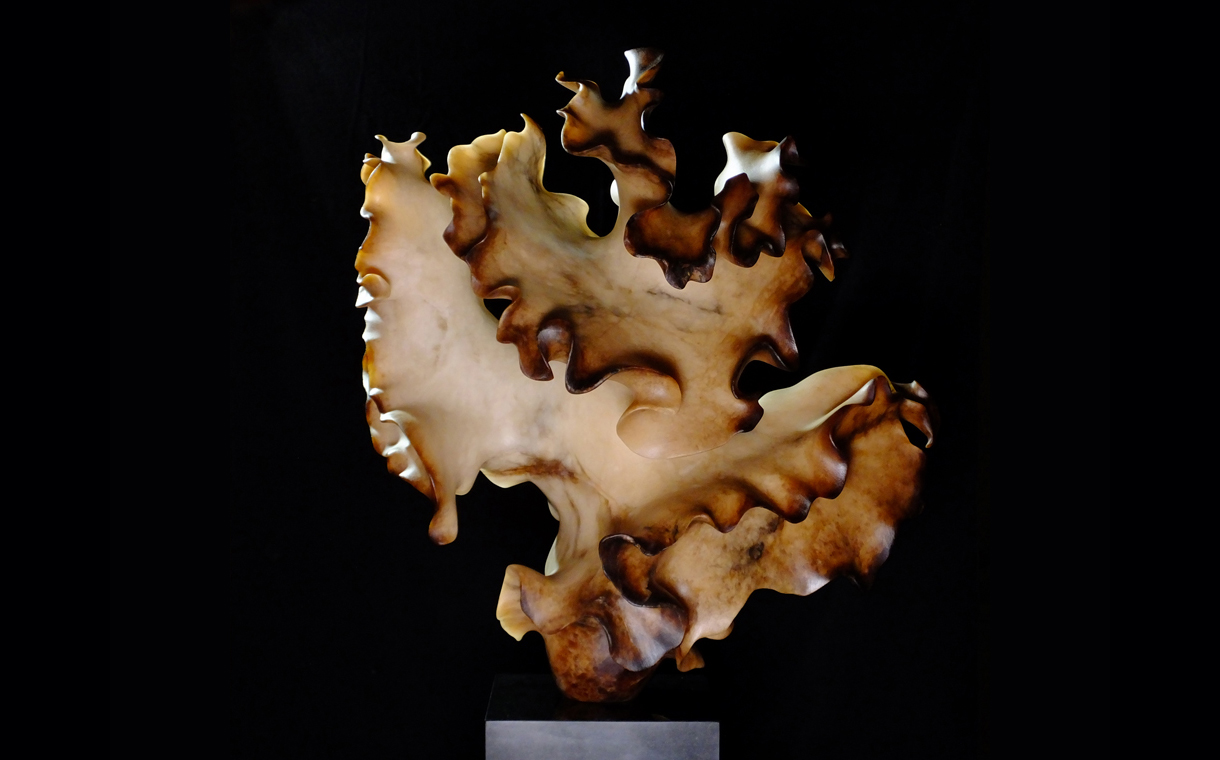 This is my Aleteo de Miel II carved from honey alabaster. Above is her making her debut at the 2024 London Art Fair with Gallery Different