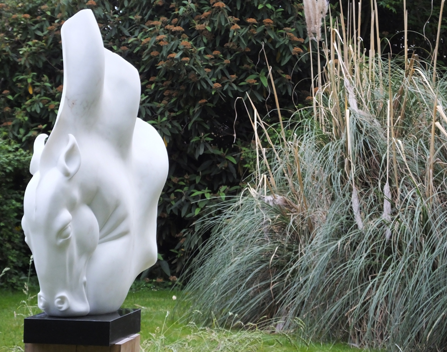 Mel has embarked on an ambitious project to create carvings of the four mythical horses who pulled Zeus’ chariot. They were Boreas, Euros, Notos and Zephyros who also represented the four winds. This image was taken at the first Sculpture at Beaulieu exhibition in the New Forest