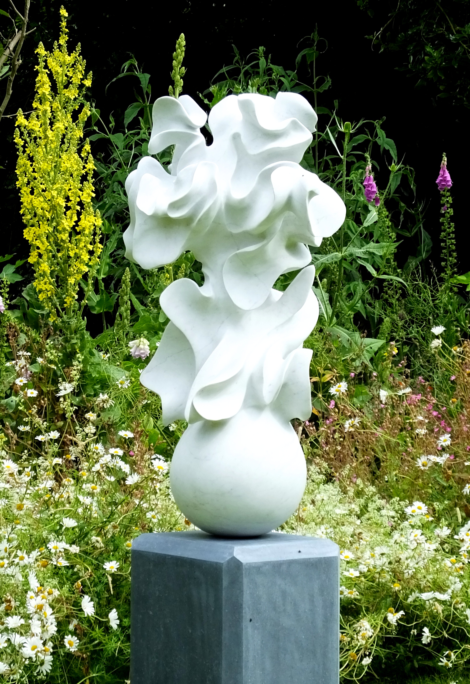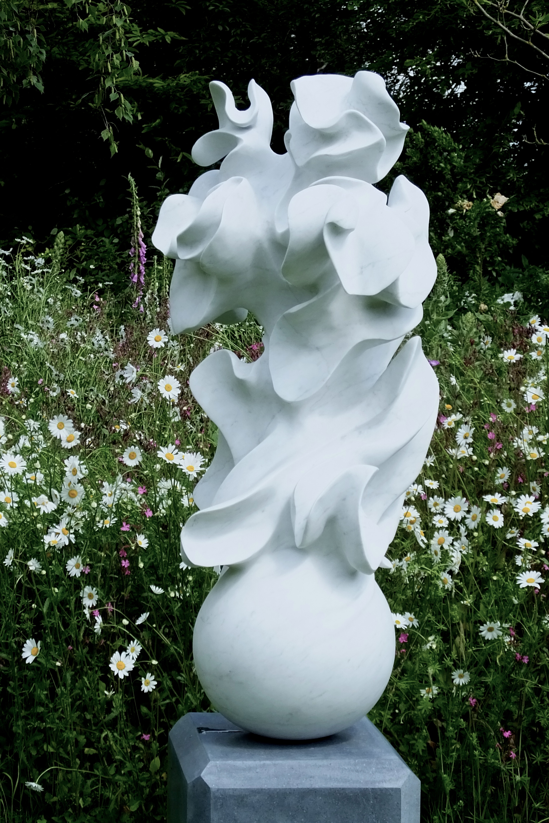 Flusso I, Carrara marble on Kilkenny limestone base, 110x51x42 cm