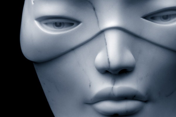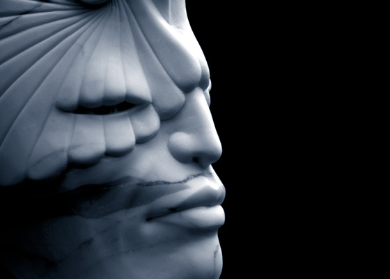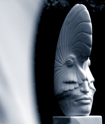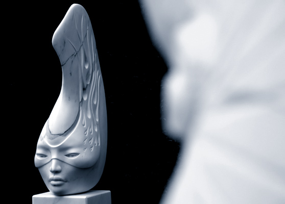 Masqerade I, right and Masquerade II, left. Carrara marble. Approximately 45 cm tall.